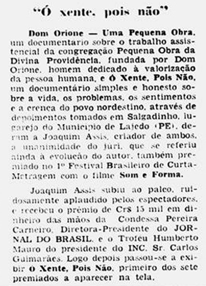 Melhor Filme no Festival Brasileiro de Curta Metragem, 1973 (juntamente