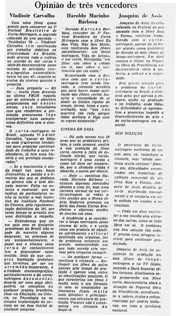 Aqui você conhece (ou lembra) e curte um pouco do que foi publicado na mídia sobre o curta metragem premiado