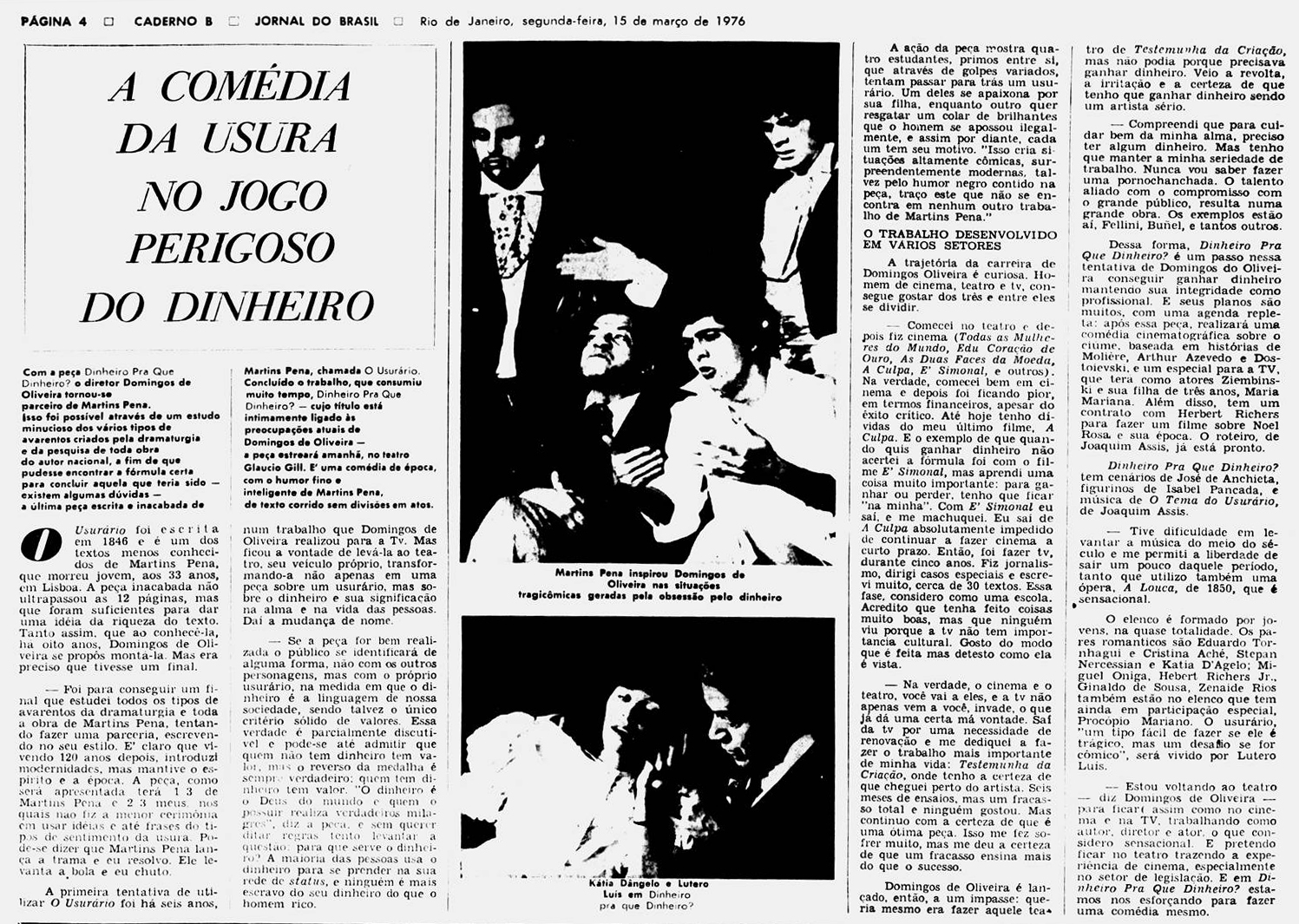 Adaptou seu roteiro cinematográfico Noel Rosa para teatro em parceria com Domingos Oliveira