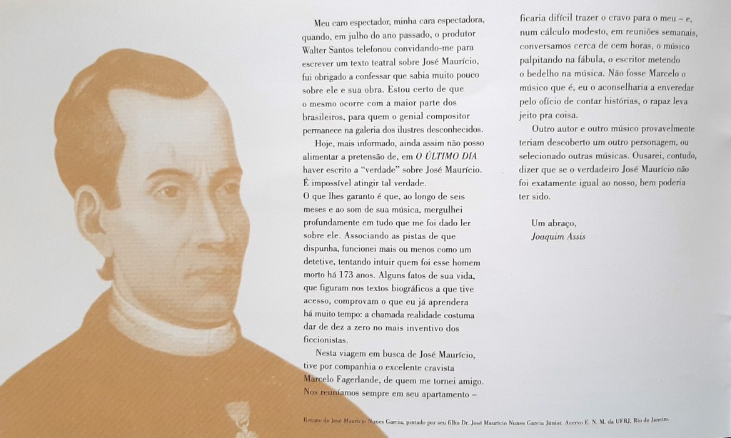 Escreveu O Último Dia, sobre o Padre José Maurício, a pedido de Marcelo Fagerlande.