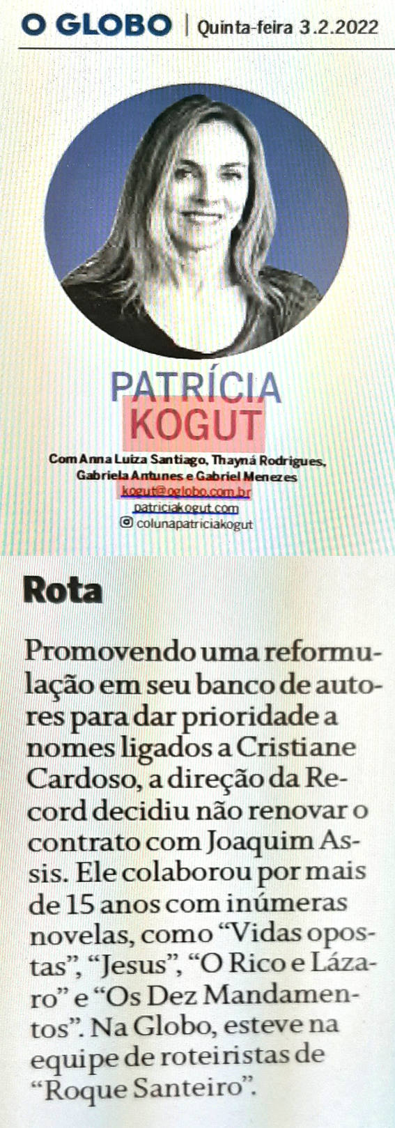 E a mais recente colaboração de Joaquim Assis na Record ainda está inédita. Aguarde.