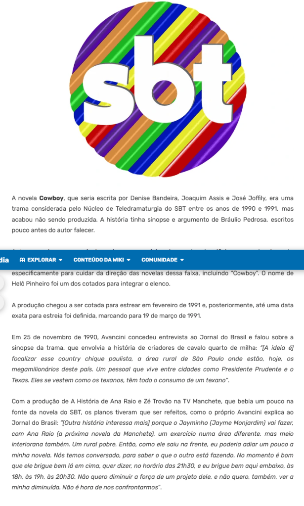 Breve passagem pelo SBT onde estruturou a novela inédita Caubói com José Joffily e Denise Bandeira, no núcleo de Walter Avancini.